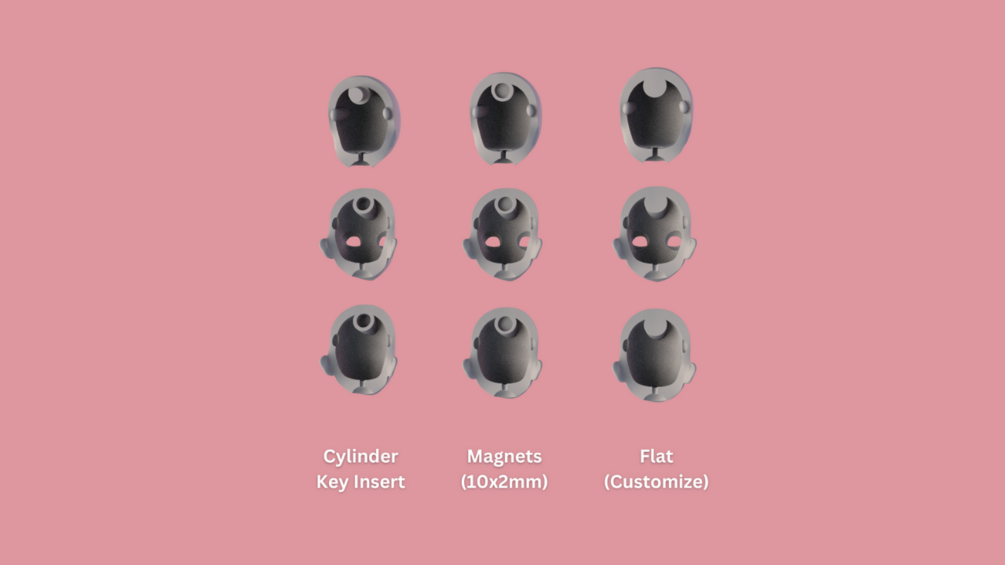 MAGNET (RECOMMENDED): Requires two 10x2mm magnets. Easily swap the normal and closed eyes face plates.